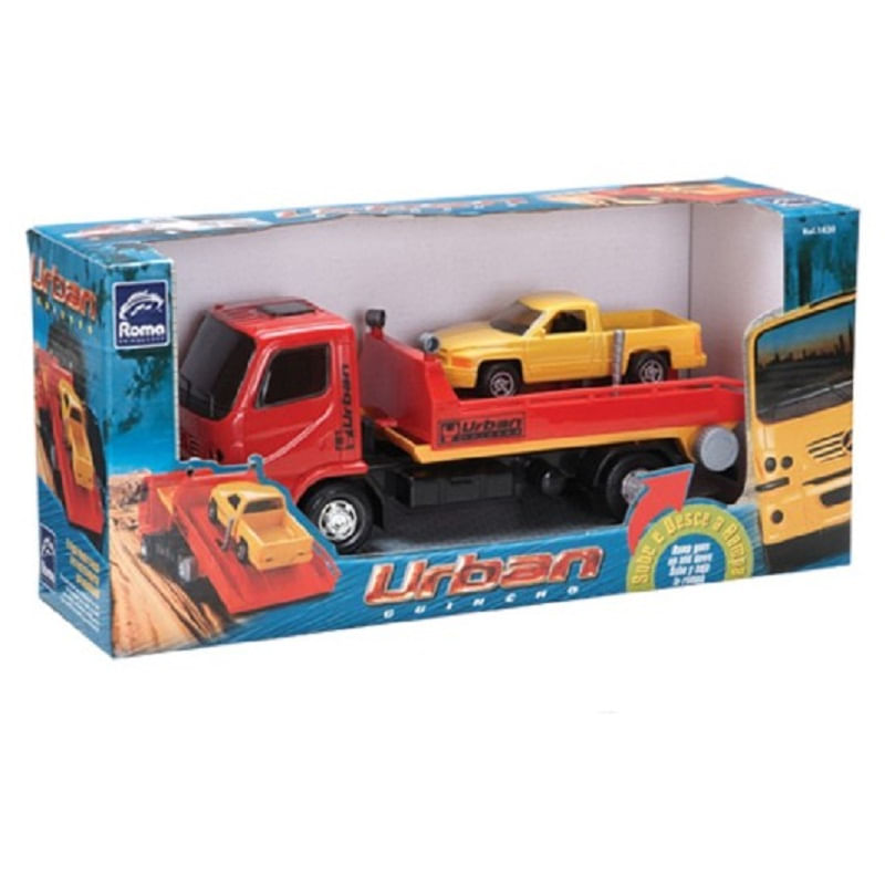 O Urban Guincho acompanha uma caminhonete. Possui rampa deslizante e sistema que trava a caminhonete na plataforma. Indicado para: Crianças à partir de 4 anos de idade. 7896965214308ref. 1430 Urban Guincho. Imagem meramente ilustrativa