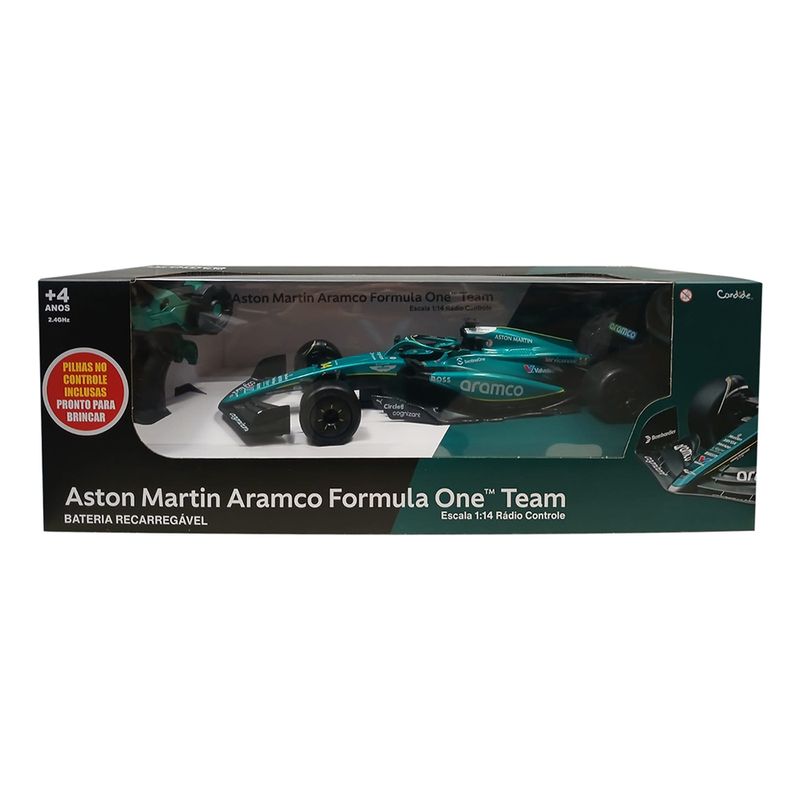 Acelere com o Veículo de Controle Remoto 7 Funções 2.4Ghz Aston Martin 1:14! Inspirado na Fórmula 1, ele possui movimentos completos e design fiel ao carro real. Acompanha bateria recarregável 3,7V, garantindo mais praticidade e diversão. Controle vai com 2 pilhas AA. Ideal para fãs de corrida que querem velocidade e estilo na brincadeira!