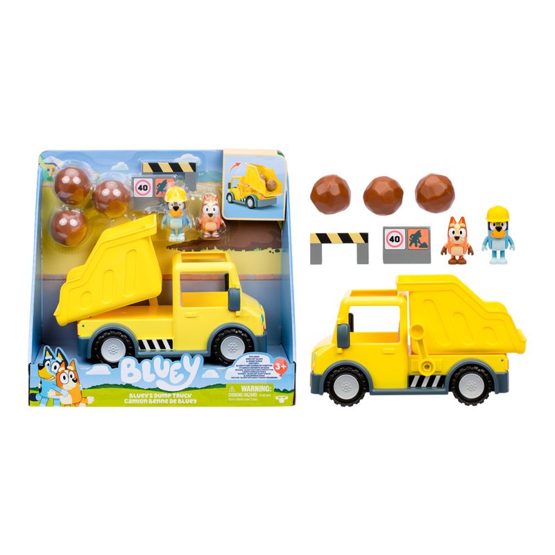 Partiu aventura com Bluey e Bingo no Caminhão Basculante! Bluey já colocou o capacete, e Bingo está cheia de lama, pronta para brincar! As figuras articuladas encaixam na cabine e vêm no tamanho ideal para as crianças. Movimente a alavanca para descarregar as pedras e posicione as placas de segurança. Inclui adesivos para personalizar. Reviva cenas do desenho ou crie novas histórias superdivertidas!