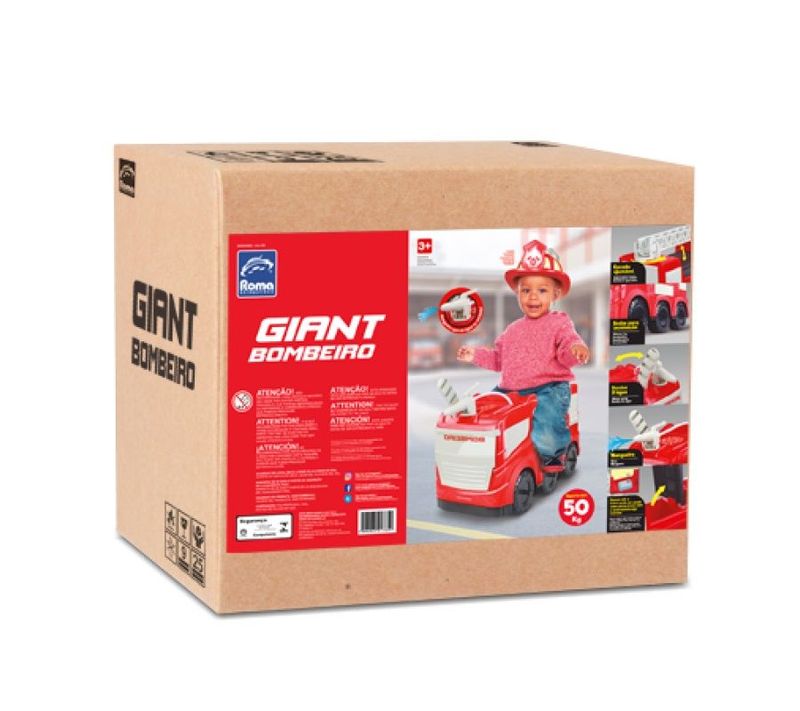 O Trator Giant Bombeiro é um caminhão feito de plástico resistente (PVC de alta resistência), que vai proporcionar momentos de muita diversão para a criançada. Características: - Conteúdo da Embalagem: Não informado- Marca: Roma- Modelo: 1785- Dimensões da Embalagem: 52,3cm, 35,5cm, 27cm- Código de Barras: 7896965217859- Certificação: INMETRO Recomendado para maiores de 3 anos. Importante: - Nossos produtos encontram-se em estoque- Todos os produtos são lacrados- Produtos acompanham nota-fiscal e garantia