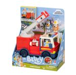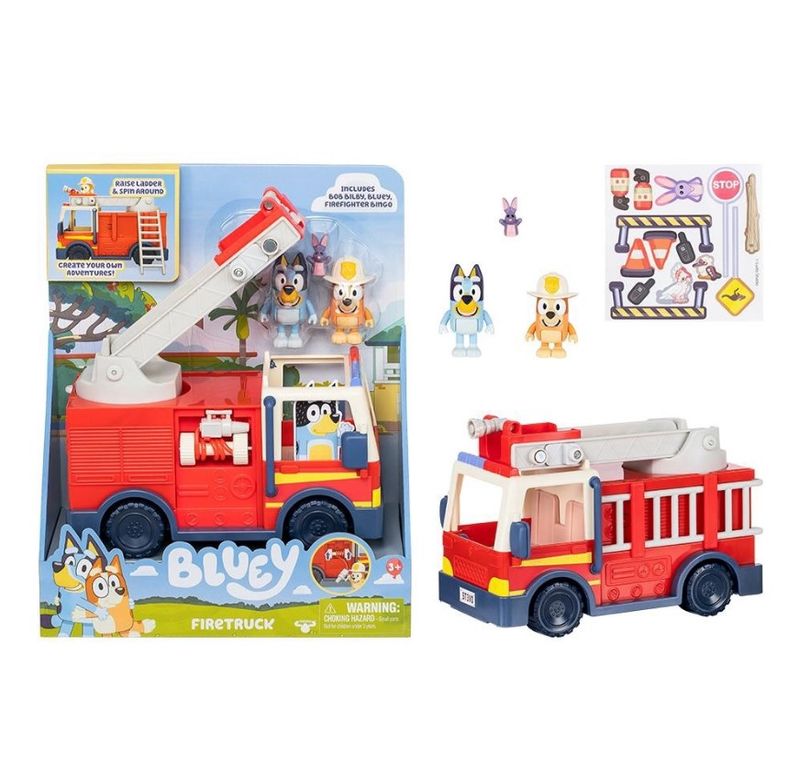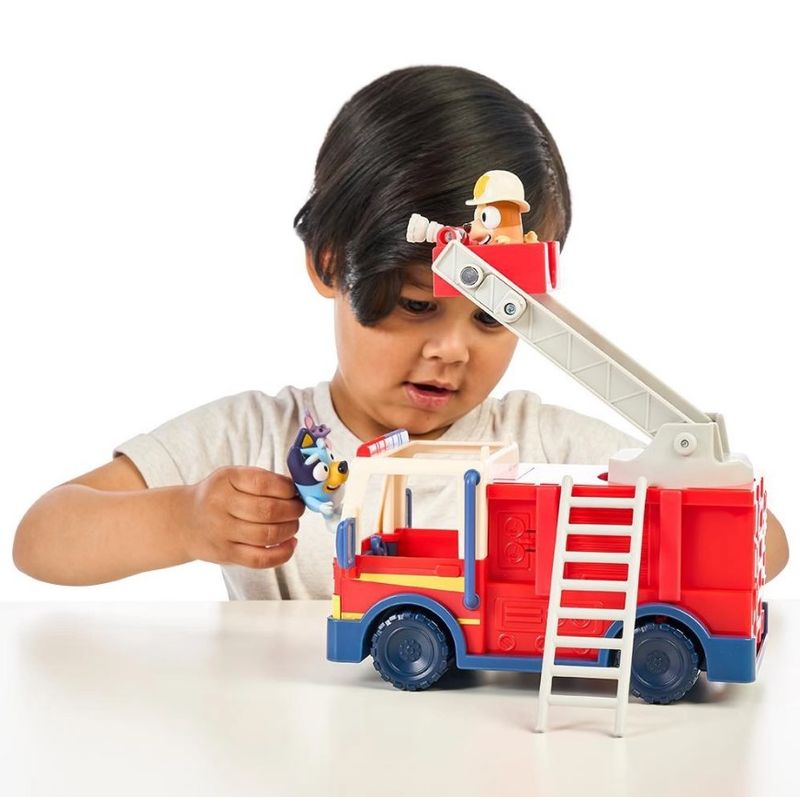 Junte-se a Bluey e Bingo em uma aventura completamente nova com o Caminhão de Bombeiros Bluey! Este veículo repleto de ação possui recursos divertidos para as crianças brincarem. O caminhão de bombeiros vem com 2 figuras, a Bombeira Bingo e Bluey. Ele até inclui um acessório do Bob Bilby que se encaixa na mão do Bluey! O caminhão de bombeiros tem o tamanho ideal para que Bluey e Bingo possam sentar na cabine e passear. Levante a escada embutida e gire-a! Coloque Bingo no topo da escada e mova a mangueira de água para ajudá-la a mirar! Este incrível caminhão de bombeiros também possui uma mangueira retrátil para as crianças puxarem para mais ação. Do outro lado do caminhão, há uma escada removível que simplesmente desliza para fora. Há até uma folha de adesivos para personalizar a brincadeira! As figuras tanto de Bluey quanto de Bingo são articuladas, com braços e corpos móveis, e têm 6cm de altura. As crianças vão adorar recriar alguns dos momentos mais memoráveis do programa com este ótimo brinquedo!