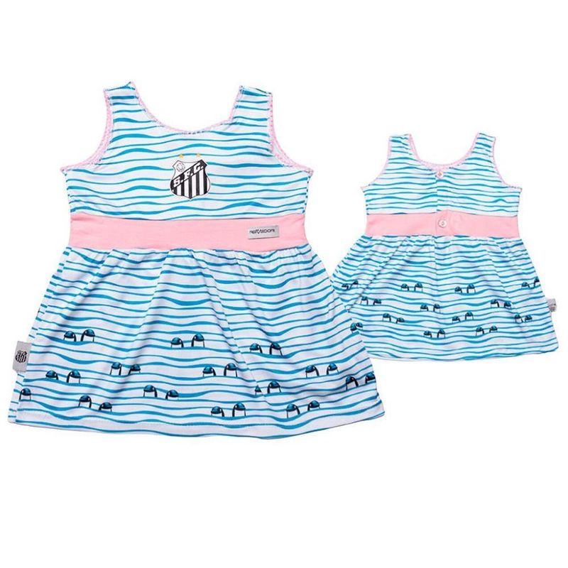 Vestido Bebê Infantil Santos Mascote Oficial Esse lindo vestido do Santos foi desenvolvido para as pequenas que são torcedores desde o berço. Possui uma linda estampa do Mascote e uma faixa rosa, muito charme e delicadeza para torcer pelo Peixe. Vista a nova geração de campeões com as cores do seu time de coração. Mais um produto Oficial do Santos. Características - Vestido regata