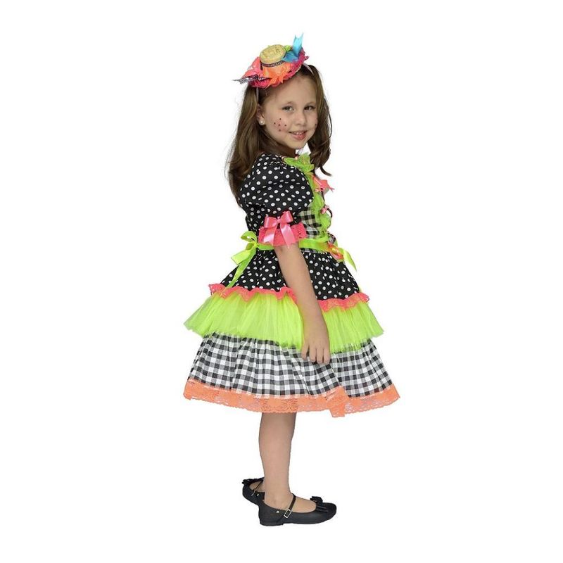 Vestido Junino Bambolê Bolinha Saia de Tulê e Tiara Colorido
