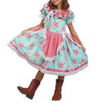 Vestido Junino Lelê Petit Avental Floral Tiffany Colorido As pequenas não podem ficar de fora nesse Arraiá! Armação: Todos os vestidos vão a com anaguá embutida, todo forrado em tecido 100% algodão, garantindo o conforto da criança.