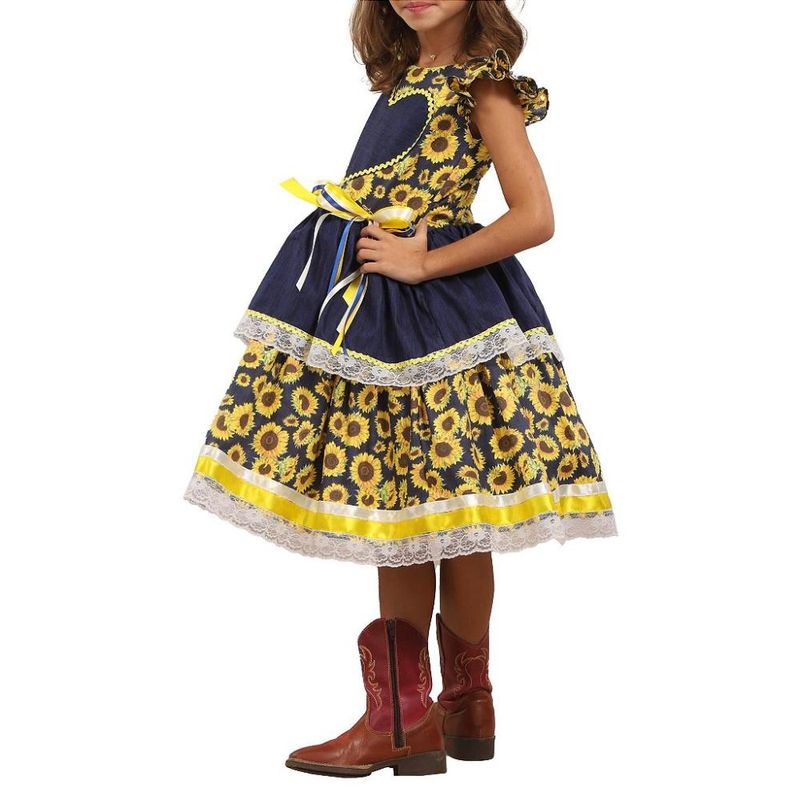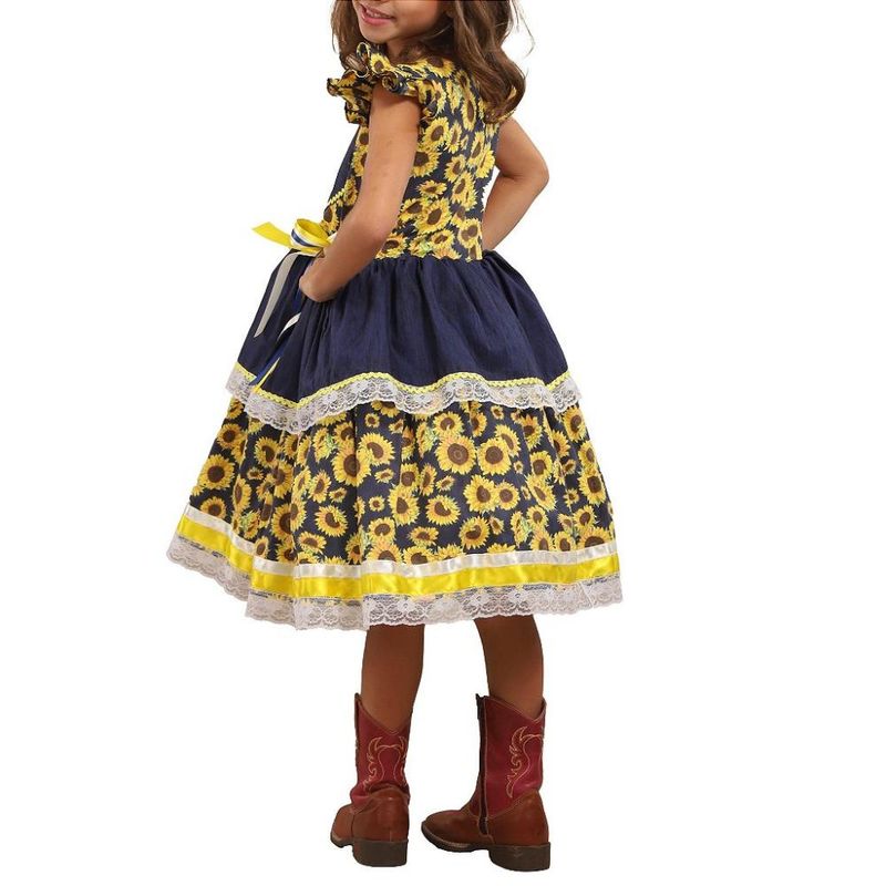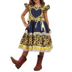Vestido Junino Lelê Petit Coração Girassol Azul Marinho