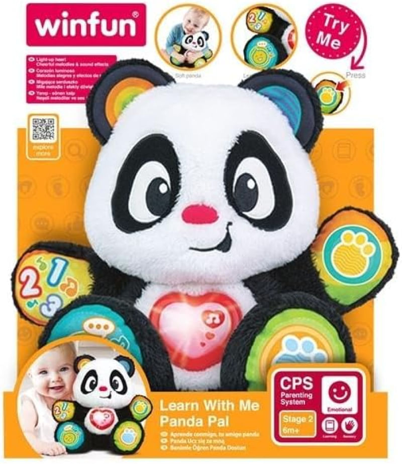 Conheça o mais novo amiguinho do seu bebê: Meu Ursinho Panda da Winfun! O Meu Ursinho Panda é um ursinho de pelúcia com atividades musicais, que inclui um coração luminoso e melodias alegres, além de efeitos sonoros como respiração e batidas do coração. Possui funções diferentes em cada uma das patinhas com sons divertidos e músicas.