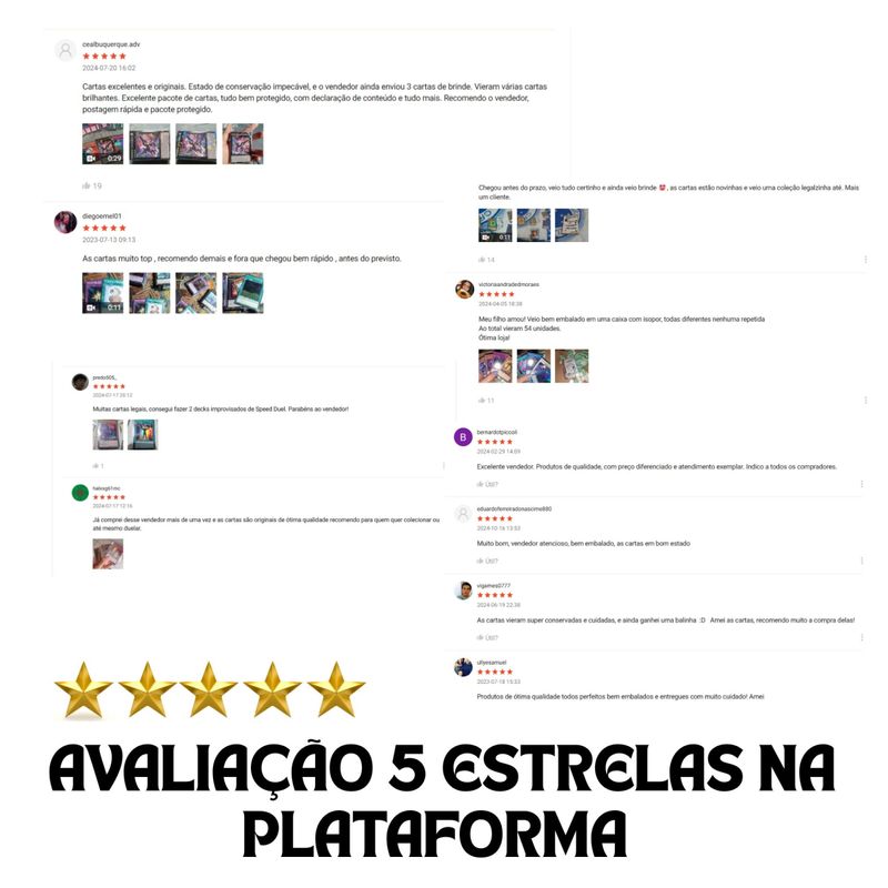 O produto acima é também conhecida como cartinha de Yugioh, figurinha Yugioh, cartas Yu-gi-oh TCG, etc... Essas são as cartas originais e contam com o que há de melhor em qualidade de papel e impressão, por ser um produto oficial da Konami.