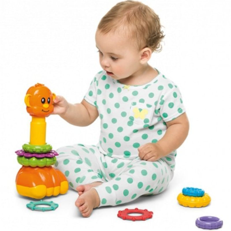 Zoo Argolas Calesita vem com oito argolas coloridas em cores vivas e vibrantes, cada argola pode ser montada conforme os tamanhos, ajudando o bebê na coordenação motora, além de divertir ensina o encaixe das argolas.